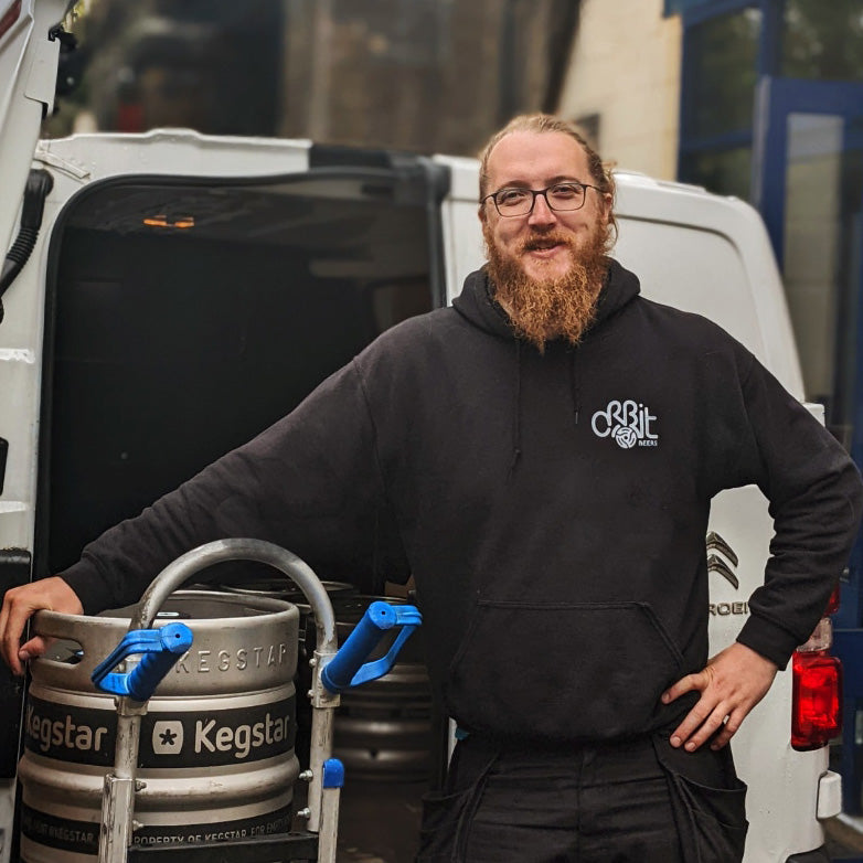 Our wonderful Drayman Chris delivers fresh Orbit beers to London and Brighton. But if you're further afield, you can order from any of the distributors below.